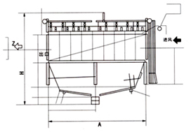 除塵器主要由上箱體、中箱體、進(jìn)風(fēng)通道、支架、濾袋及噴吹裝置,卸灰裝置等組成。含塵空氣從除塵器的進(jìn)風(fēng)通道進(jìn)入各室灰斗開在灰斗導(dǎo)流裝置的導(dǎo)流下,大顆粒的粉塵被分離,直接落入灰斗,而較細(xì)粉塵均勻的進(jìn)入中部箱體而吸附在濾袋的外表面上,干凈氣體透過濾袋進(jìn)入上箱體,并經(jīng)各切換閥和排風(fēng)管排入大氣。隨著過濾工況的進(jìn)行,濾袋上的粉塵越積越多,當(dāng)設(shè)備阻力達(dá)到限定的阻力值時, 由清灰控制裝置按清灰時間設(shè)定值,按設(shè)定程序打開電磁脈沖閥,進(jìn)行停風(fēng)噴吹,利用壓縮空氣瞬間噴吹使袋內(nèi)壓力聚增,將濾袋上的粉塵進(jìn)行拌落(即使粘細(xì)粉塵亦能較底地清灰)至灰斗中,由排灰機構(gòu)排出。