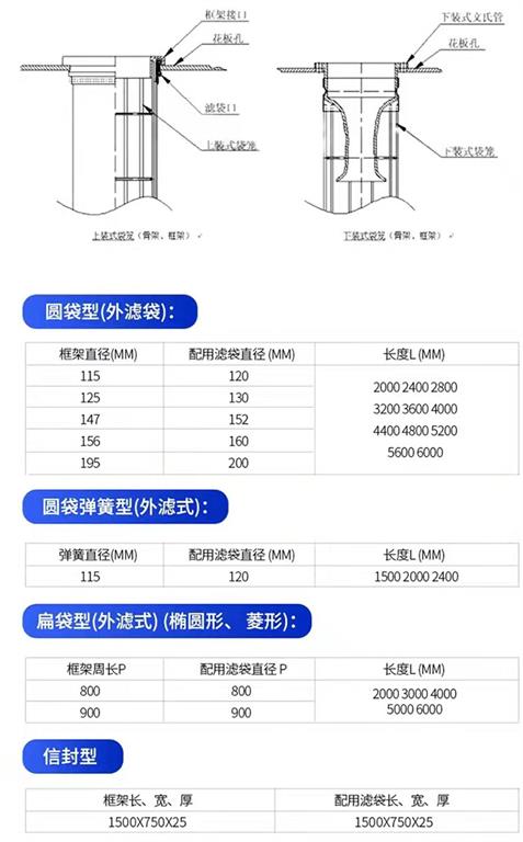 圓形.橢圓形.扁形.信封形.梯形.星型.其它根據客戶要求定制各型號的除塵骨架.